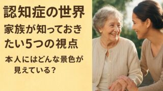 介護 【認知症の世界】家族が知っておきたい5つの視点と寄り添い方 認知症の人が見ている世界を理解できていますか?時間の感覚や不安、感情の残り方など、家族が知っておきたい5つの視点と寄り添い方をわかりやすく解説します。 2025.10.15 介護
