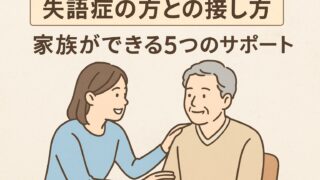 介護 失語症の方との接し方|家族ができる5つのサポートと伝わる工夫 失語症とは、脳の障害によって言葉を理解・表現する力が低下する症状です。この記事では、失語症の原因・リハビリ・そして家族ができる5つの接し方を、介護の現場経験をもとにやさしく解説します。 2025.10.18 介護