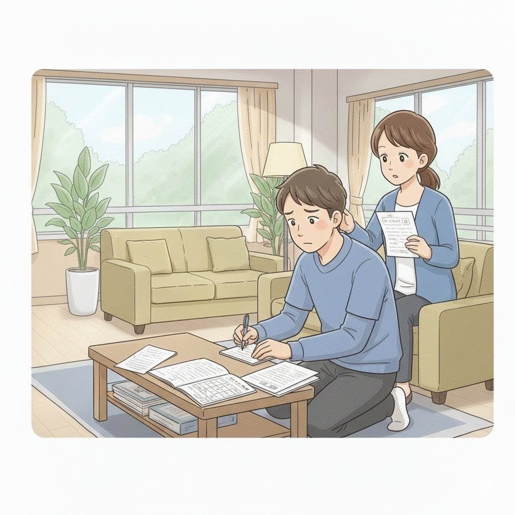 なかなか会えない親の薬や病歴を家族が確認しているイメージ 自宅介護